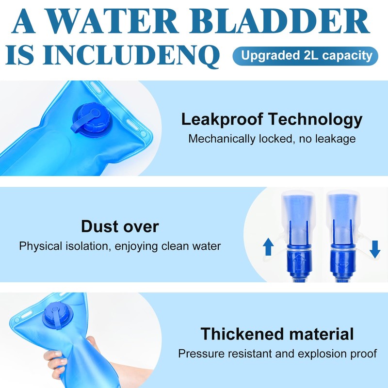 - 【Multiple Use】Our blue hiking backpack with water bladder is suitable for hiking, running, MTB cycling, cycling, climbing, music carnival, and other occasions. This running hydration vest can be a are great companions for families and friends. MIAOJIE focuses on outdoor sports backpacks, and vitality blooms from here.