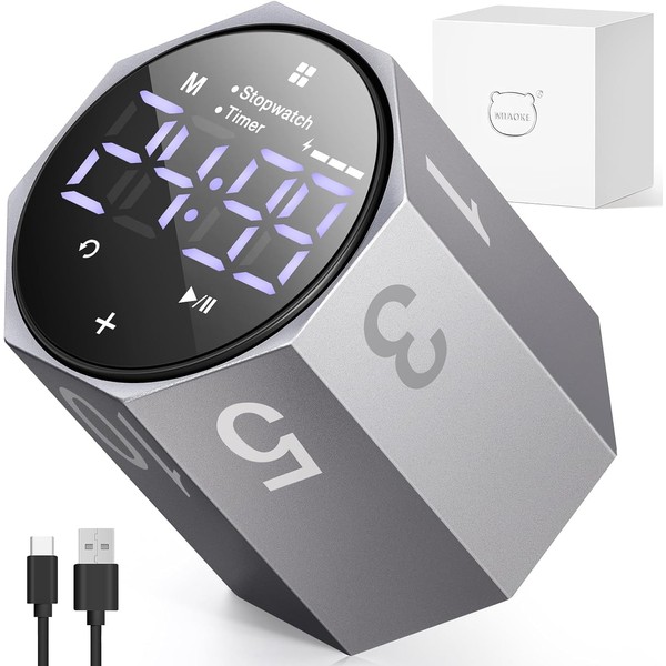 MIAOKE Pomodoro Timer-Aluminum Alloy Frosted Metal LED Large Screen Digital Automatically Rotated Display, Focus Efficient Management on Work and Study,Office,Living Room-Gray