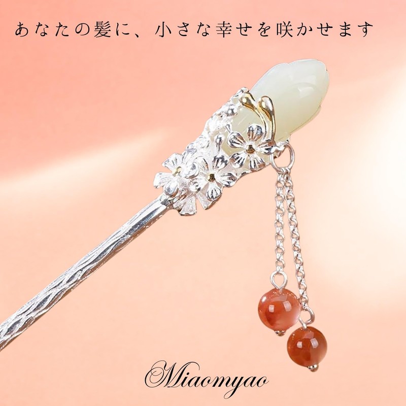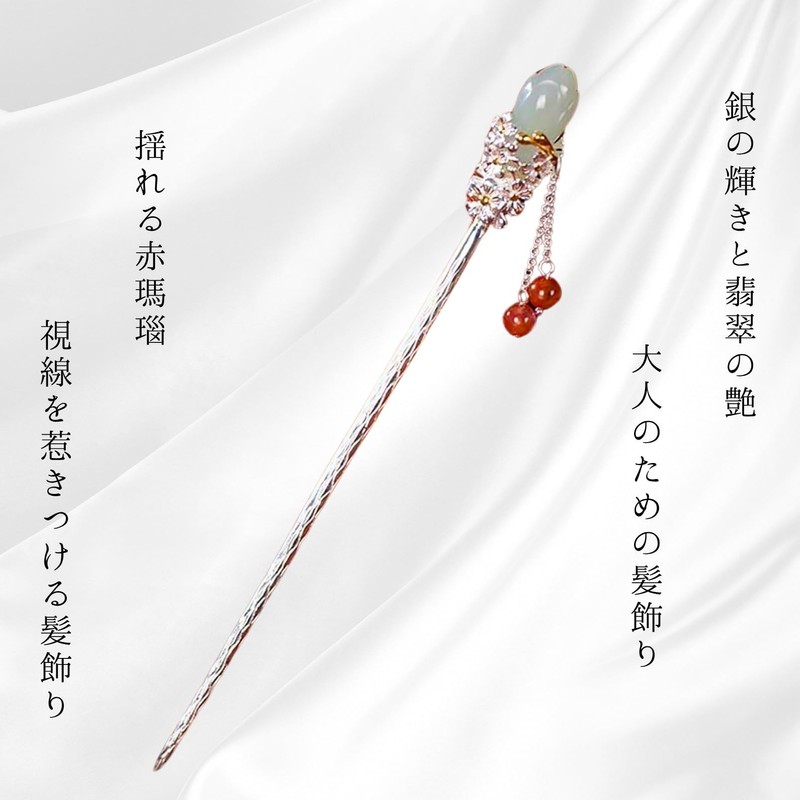 新品 未使用 [ミャオミャオ] Miaomyao [ミャオミャオ] Miaomyao かんざし 簪 一本 和装 留袖 着物 浴衣 髪飾り 金属 ヒスイ 翡翠 赤瑪瑙 シルバー ヘアアクセサリー