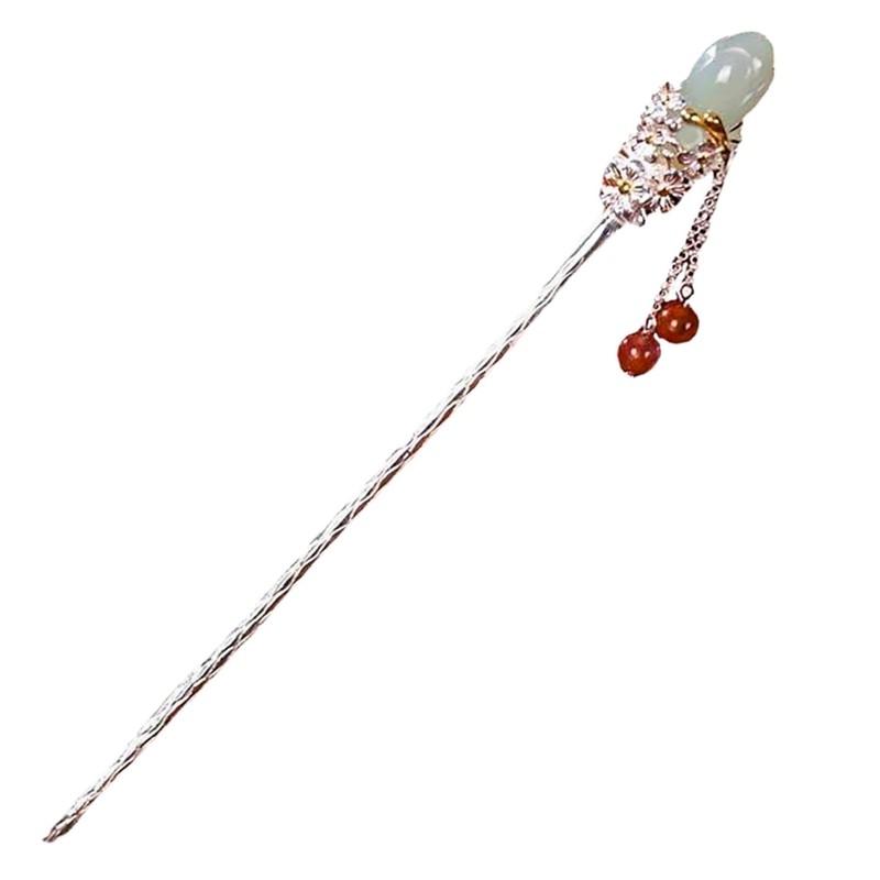 [ミャオミャオ] かんざし 簪 一本 和装 留袖 着物 浴衣 髪飾り 金属 ヒスイ 翡翠 赤瑪瑙 シルバー ヘアアクセサリー Miaomyao