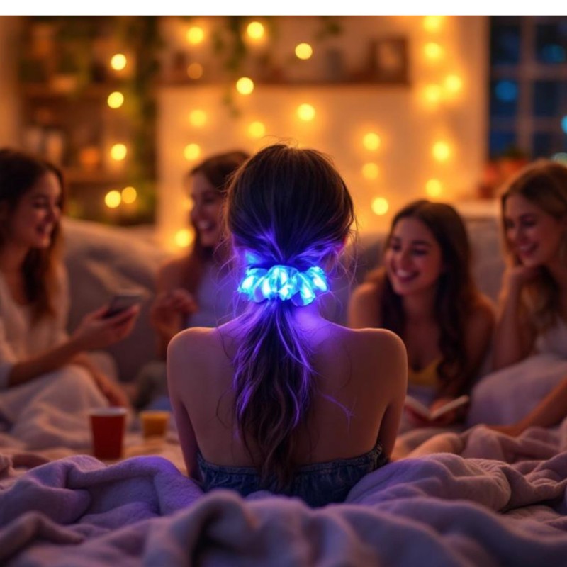 - Each light up scrunchie has three different light modes. Press button once for fast blinking. Press button twice to change to slower blinking light. Press button three times to turn to a solid light. Press button four times to turn off.