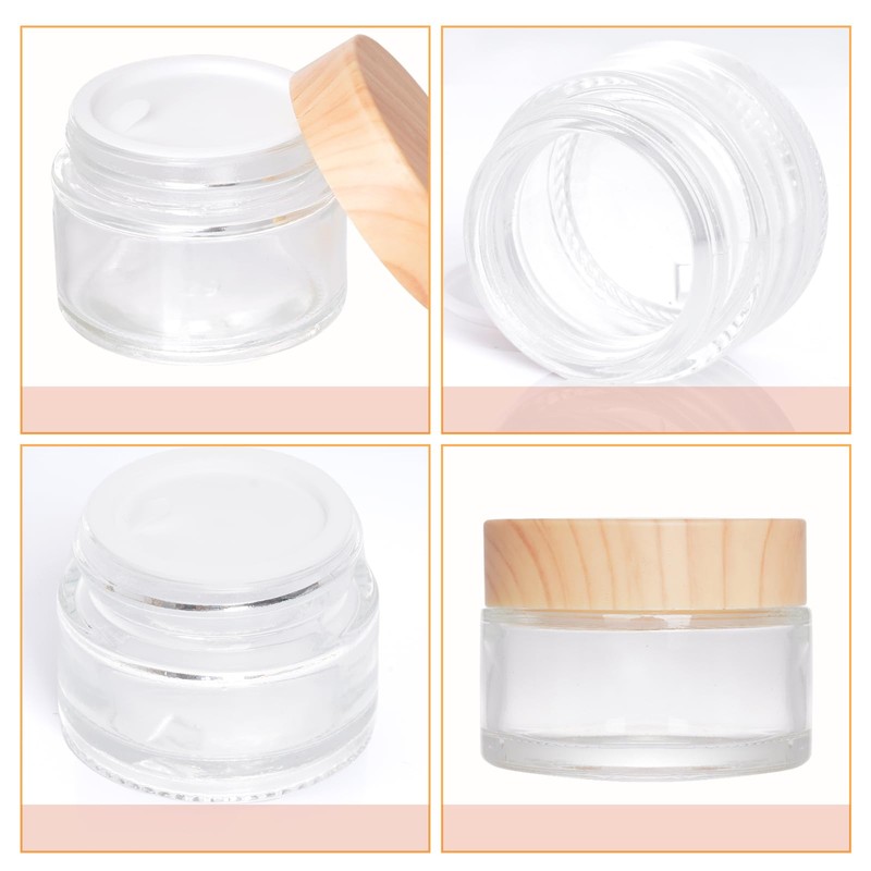 • Package Content: The package includes 6pcs glass jars, capacity is 30gram/30ml/1.06oz, size is 1.97"/5cm in diameter, 1.54"/3.9cm in height. lightweight, easy to carry and won't take up your storage space