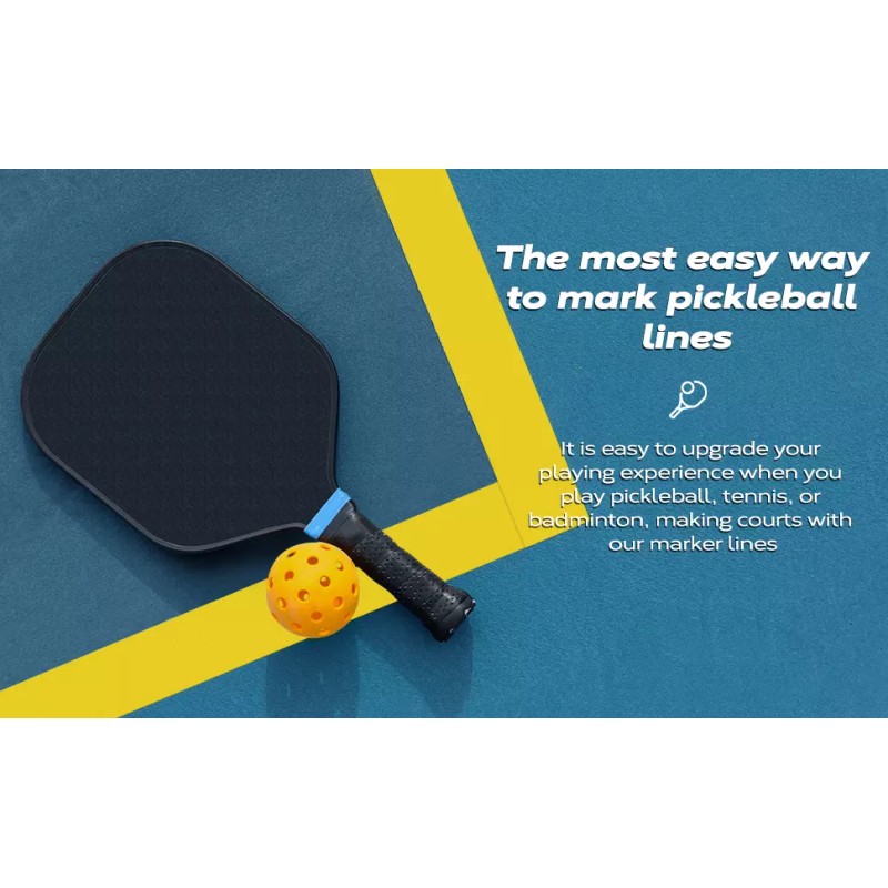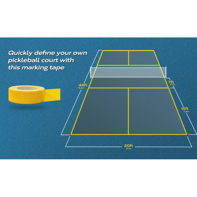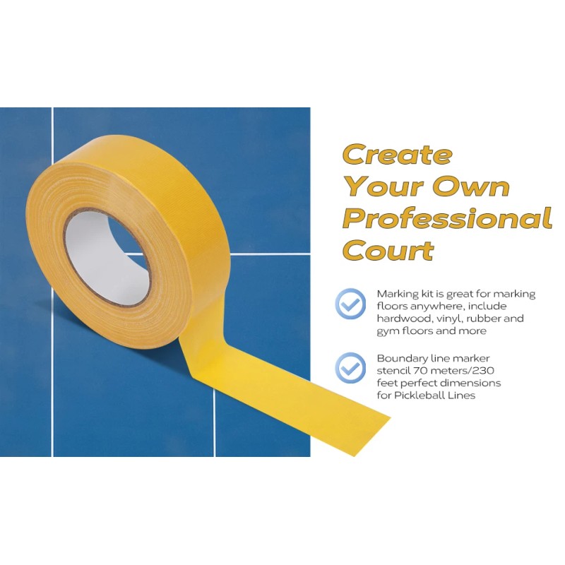 - [Super Adhesive] Define any space quickly and easily with this super adhesive marking tape. Our pickleball court tape is tough enough to adhere to any floor or hard surface and remain in place. It can withstand high foot traffic and equipment, so you can depend on this floor tape to keep your areas spaced and marked.