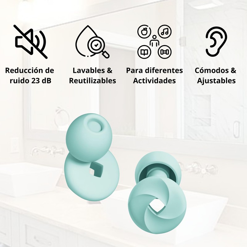 Hushbud ofrece tapones auditivos reutilizables y certificados, ideales para dormir, asistir a conciertos, concentrarte, disfrutar de festivales, practicar deportes y viajar cómodamente. Gracias a su diseño acústico, Hushbud protege tu audición con una reducción de ruido filtrado de 23 dB, permitiéndote disfrutar de un ambiente más seguro y cómodo.