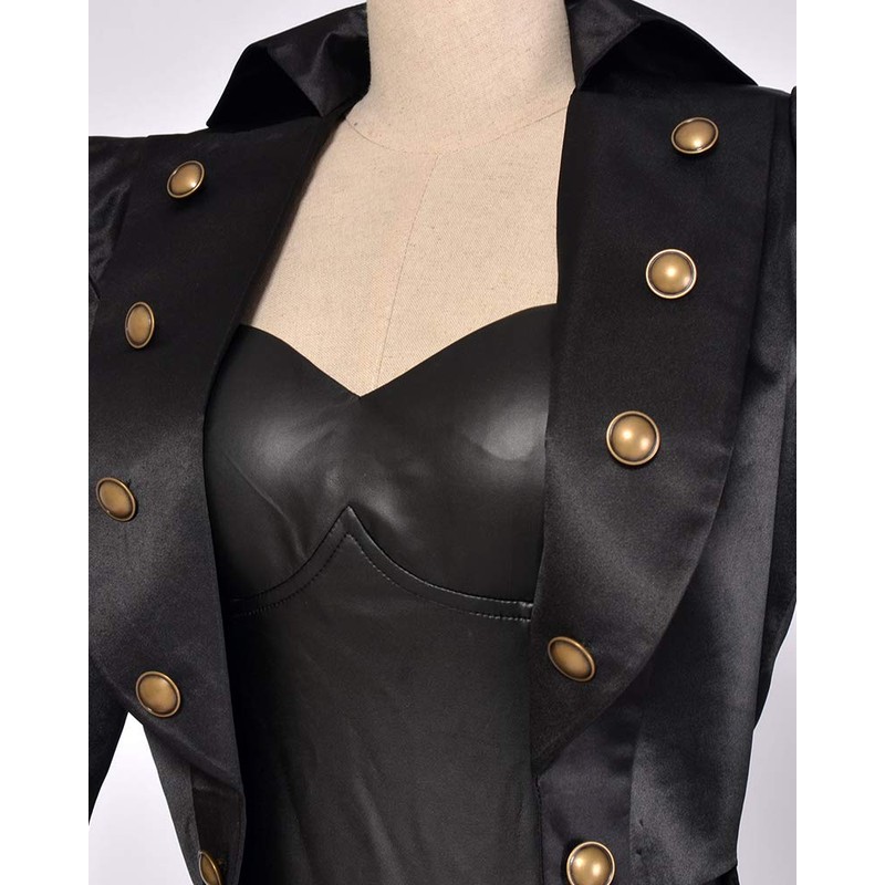 - Package Includs: Coat, leotard, gloves, eyepatch, waist decoration, stockings, invisible bra straps,choker