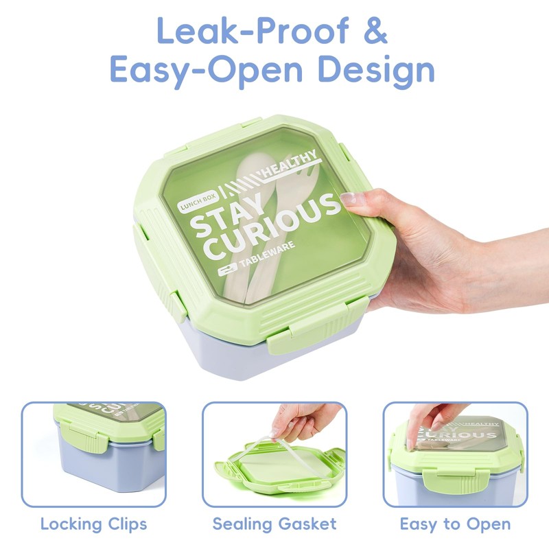 - Leakproof Design: The lid of the salad lunch box features a silicone gasket around all four sides and 4 locking clasps, ensuring an airtight seal. Even if it’s turned upside down or shaken, there will be no spills