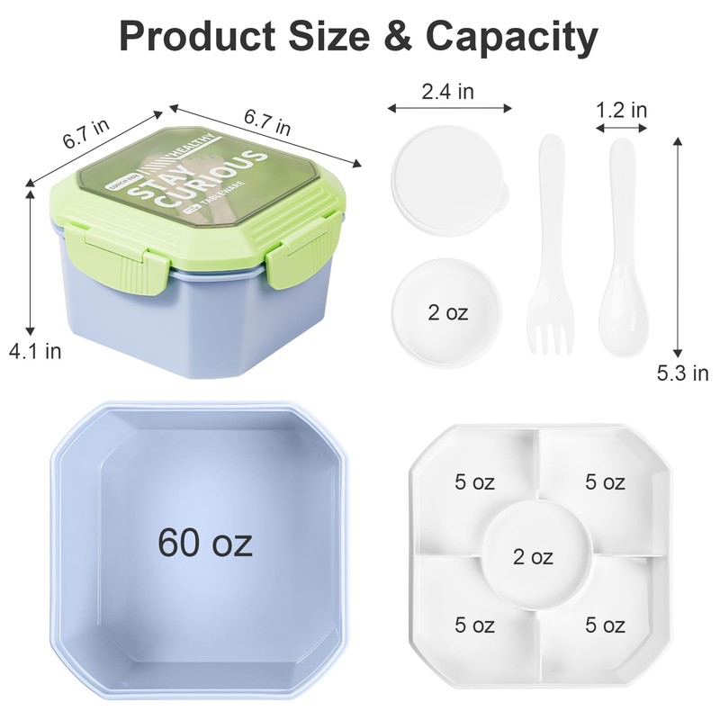 - Sauce Container with lid: The lunch box includes a small sauce container with lid in the center, perfect for storing salad dressings, sauces, or other condiments