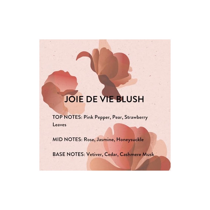 - The Fragrance: Delicate top notes of pink pepper, crisp pear, and strawberry leaves embrace feminine floral notes of rose damascena, jasmine petals, and honeysuckle. Warm base notes of vetiver, cedar, and cashmere musk round out this garden-inspired fragrance.