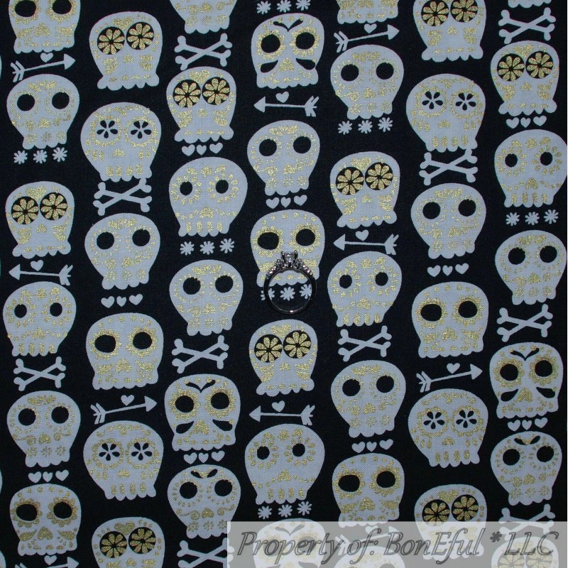 Michael Miller Fabrics BonEful FABRIC FQ Cotton Quilt Blue White Baby Boy Gold Metallic Hedgehog Mammal