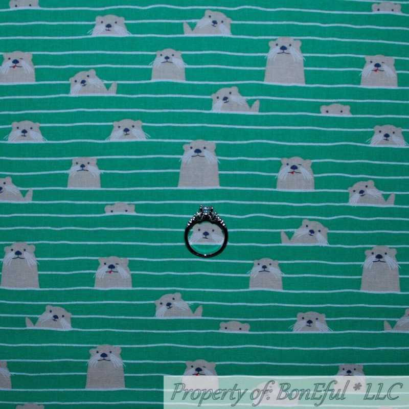 Michael Miller Fabrics BonEful FABRIC FQ Cotton Quilt Green White Stripe Sea Otter Pup Kid US Face Mask