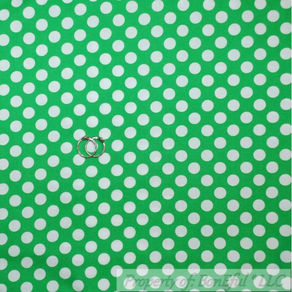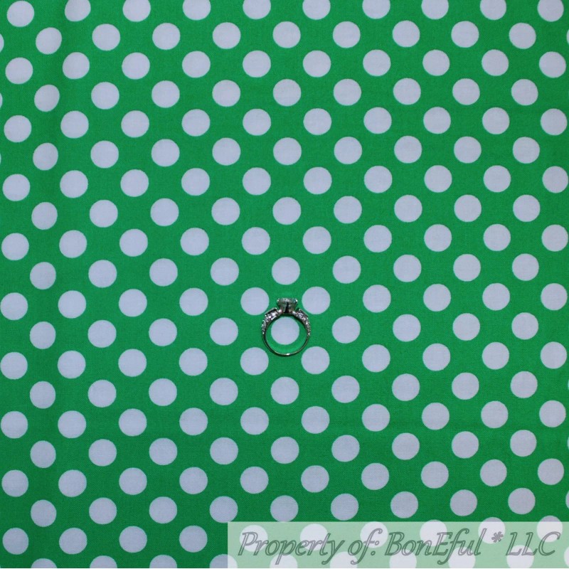 Michael Miller Fabrics BonEful Fabric FQ Cotton Quilt Kelly Green Bright White Polka Dot Stripe Xmas US
