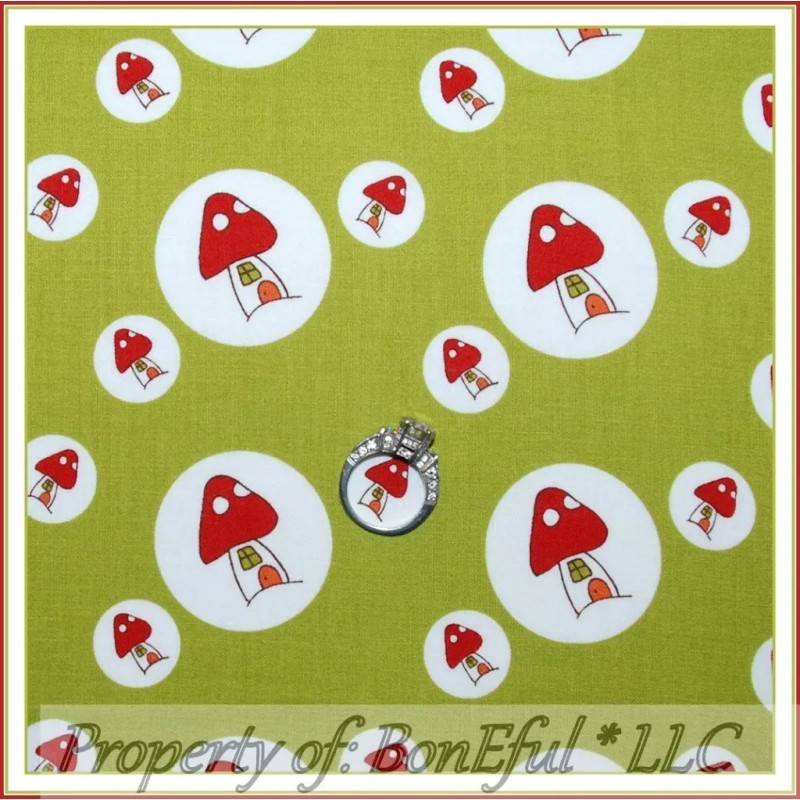Michael Miller Fabrics BonEful FABRIC FQ Quilt Green Red White Mushroom Garden Fairy Santoro Polka Dot