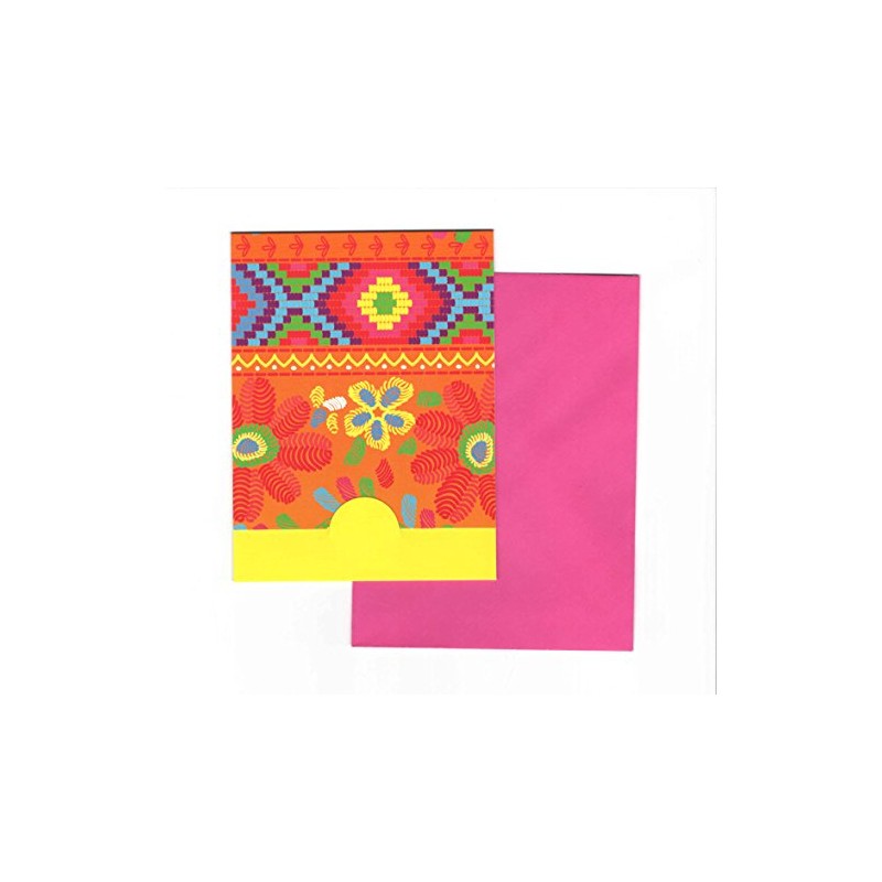 Michael's Timeless Folklore Set of 6 Blank Notecards ~ Piecework Flowers (5" x 3.75"; Pink Envelopes)