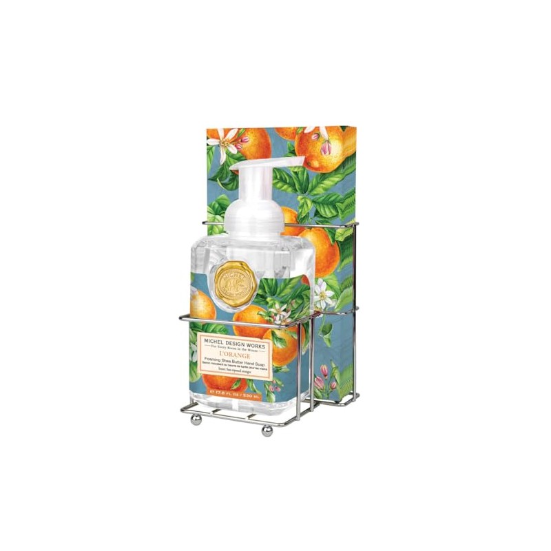 Michel Design Works Foaming Hand Soap & 15-Piece Napkin Set. L'Orange, Beautiful Square Container with Pump