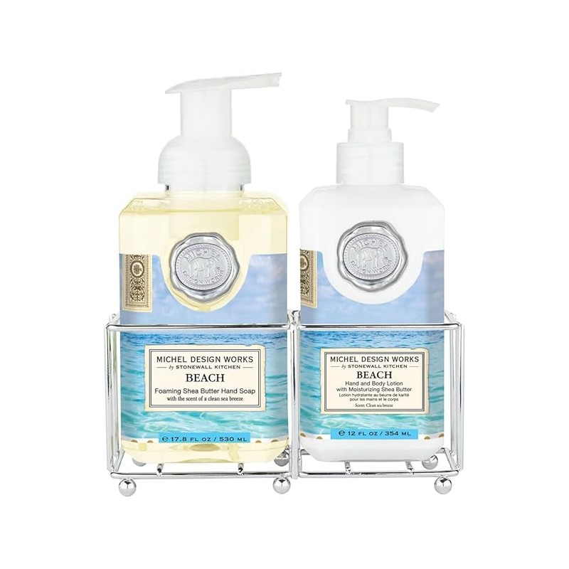 Michel Design Works Hand Care Caddy with Foaming Hand Soap and Hand & Body Lotion, Beach (846189)