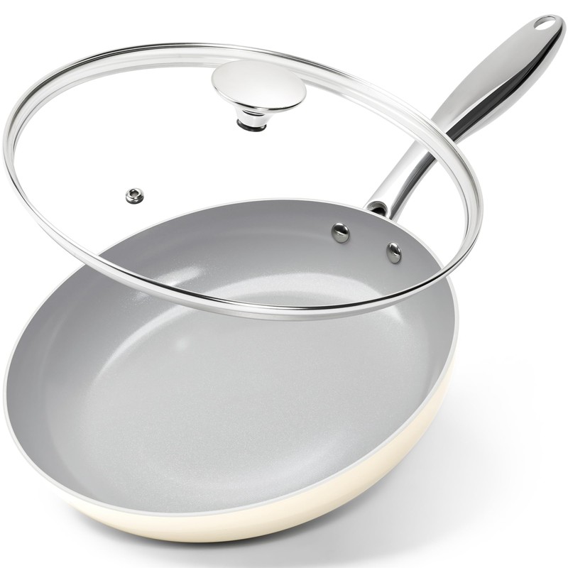 MICHELANGELO Non Stick Frying Pans - 10 Inch Frying Pan Nonstick with Lid, Nonstick Skillet with Lid, Non Toxic Frying Pan, Ceramic-Coated, Beige