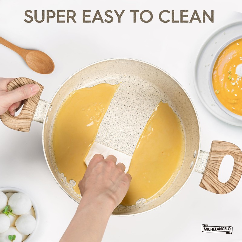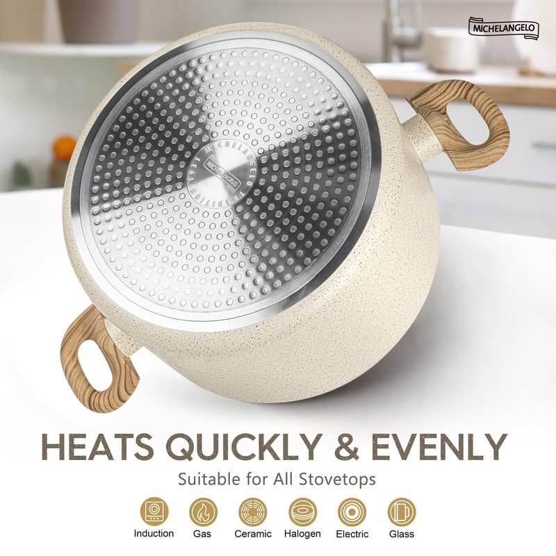 MICHELANGELO Stock Pot - 6 Qt Soup Pot with Lid, Non Stick Pots with Granite Coating, Non Toxic Cooking Pots for All Stovetops, with Stay Cool Handles