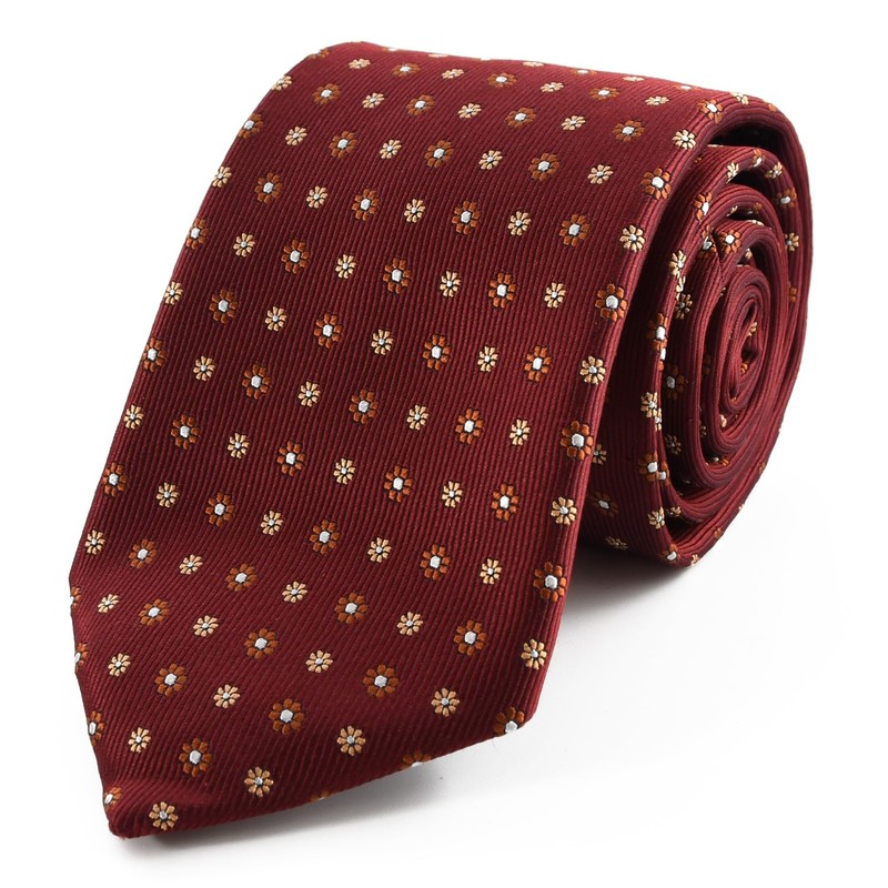 MICHI CORONDON Brand Necktie, Made in Japan, 100% Silk, Jacquard Weave, Small Pattern, A: Red
