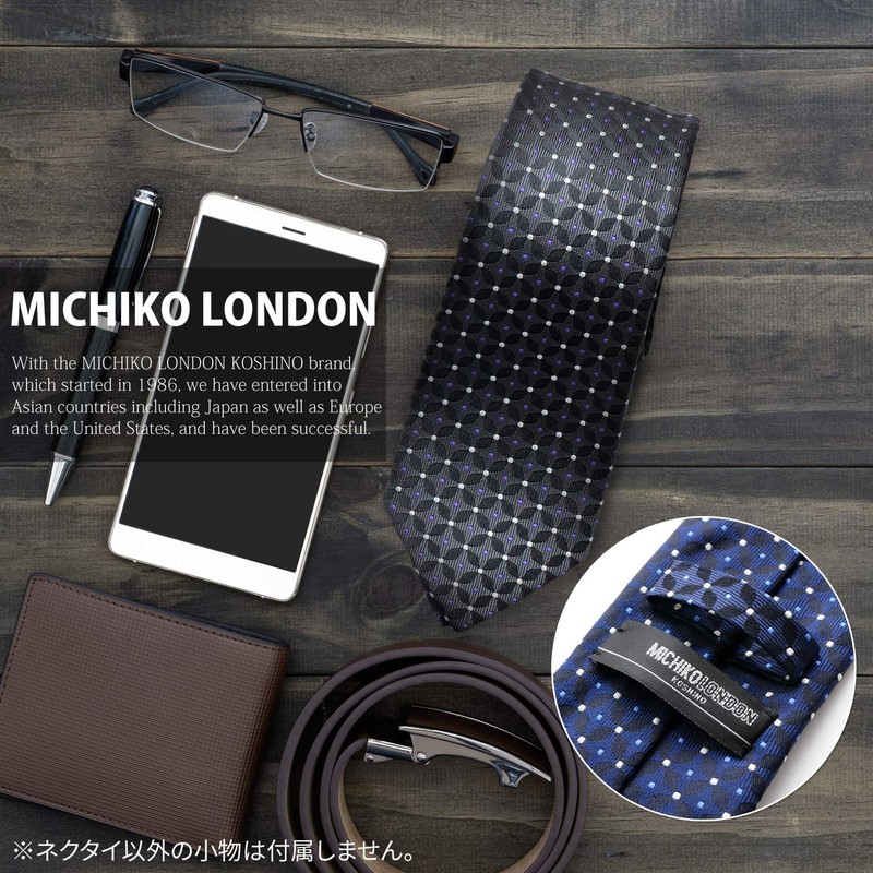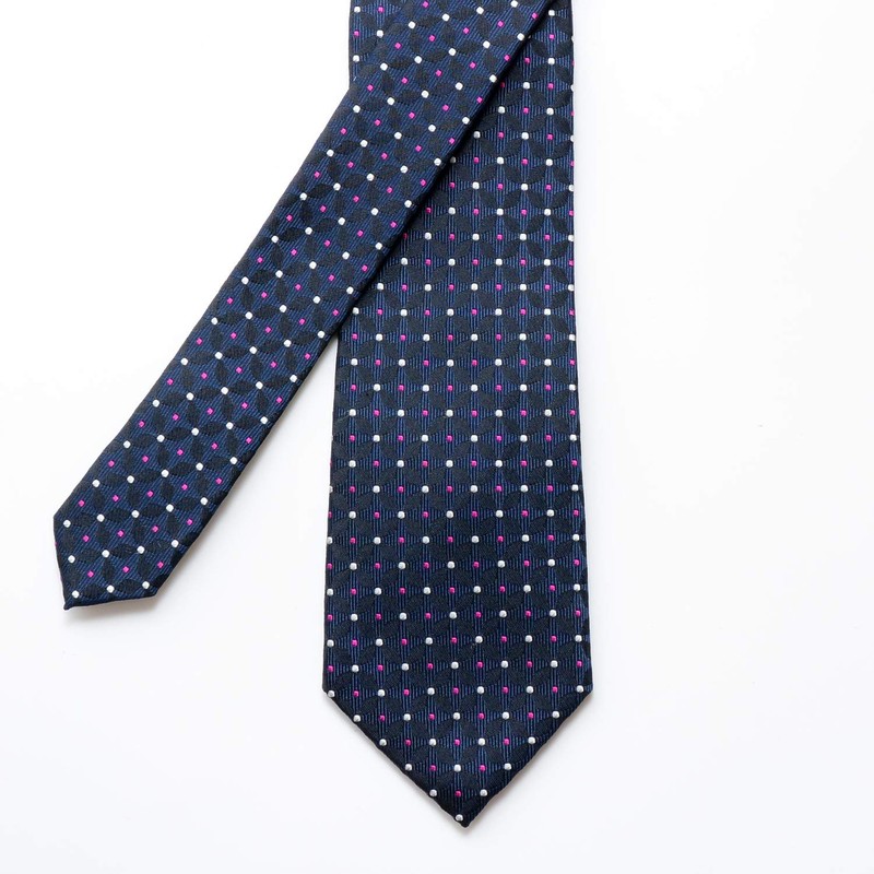 Michi Kolondon Brand Necktie, 100% Silk, Jacquard Weave, Dots, Small Flowers, D Pattern: D Navy
