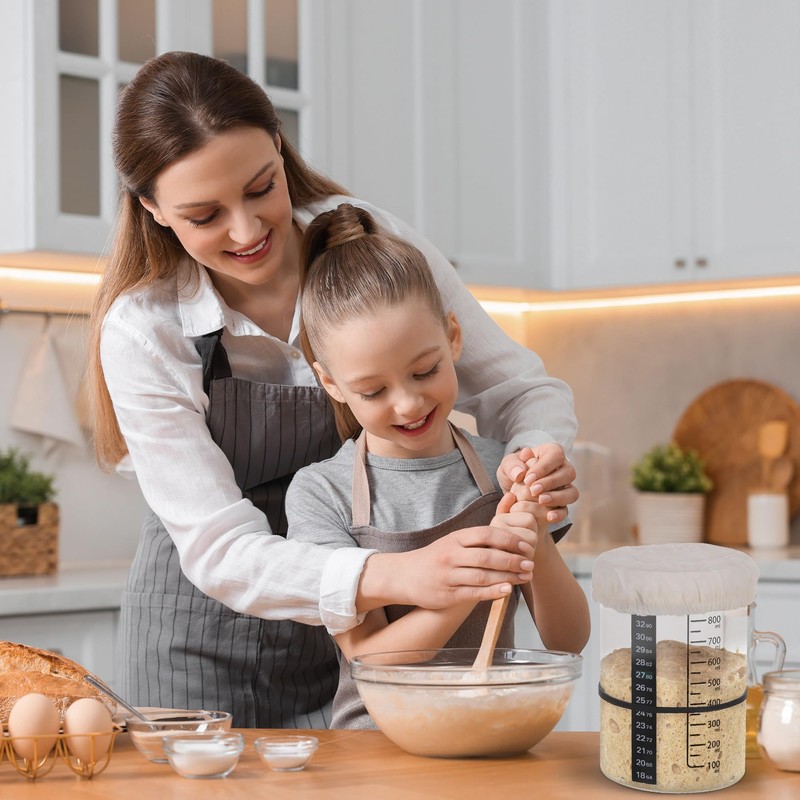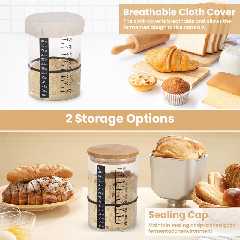 - đăPremium Safe MaterialsăCrafted from high-quality borosilicate glass, our sourdough starter jar is non-toxic, odorless, and built to last. Designed for repeated use, its durable construction ensures long-term reliability in your baking journey.