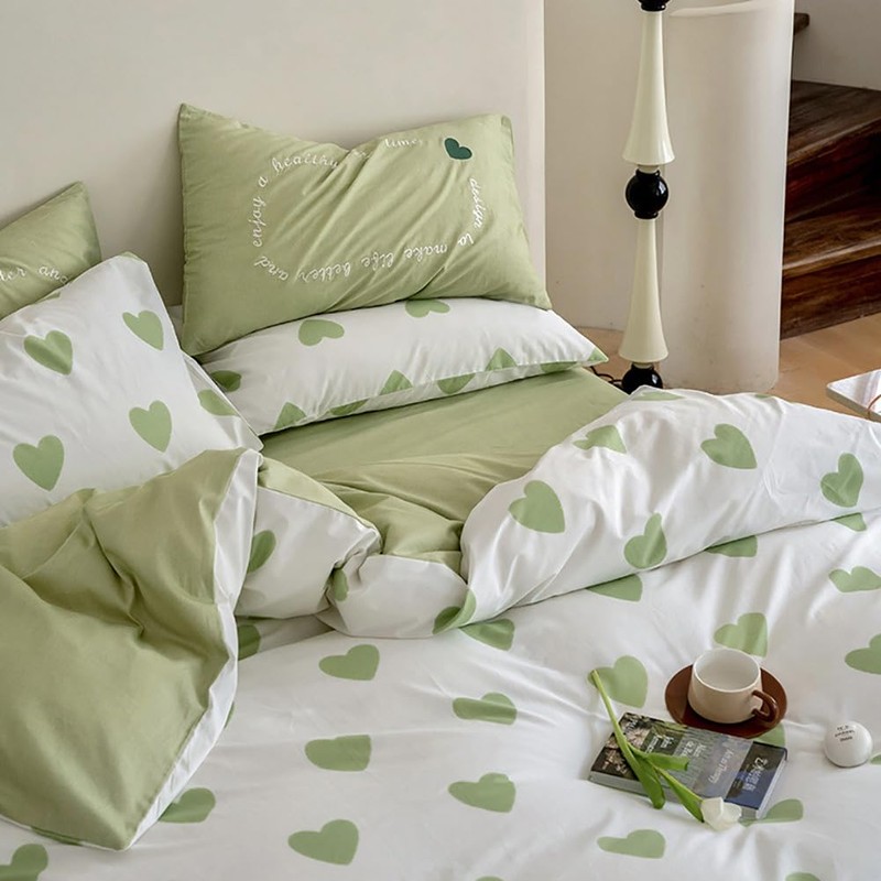 - Design: unique green hearts on the white bedding set, reversible design, green color on the other side, a duvet cover offers 2 options, suitable for year-round use.