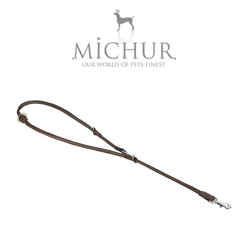 - Michur Santiago Brown a soft and strong leather dog lead / leather lead for dogs. The model: Santiago brown, the leather dog lead has a total length of 2 m with a width of 1.2 cm. This is a round lead that is adjustable and offers many uses.