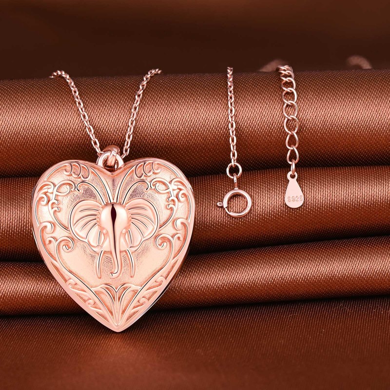 MicLee Locket Photo Heart Necklaces for Women Girl 925 Sterling Silver Openable Lockets Elephant Engraving Pendants Creative Rose Gold Necklace
