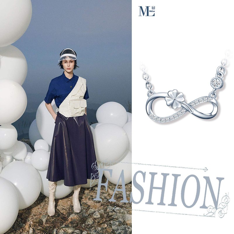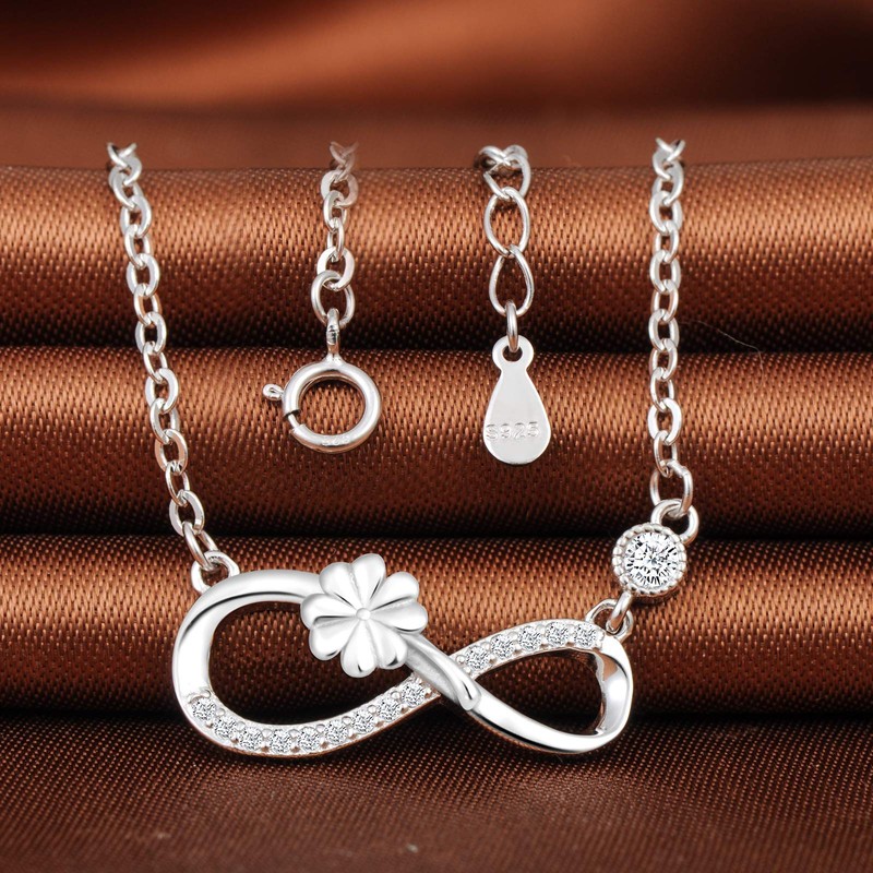 MicLee Women's girl's Necklace pendant, 925 Sterling Silver necklace, Cute Four leaf clover and infinity symbol necklace, Unique design necklace pendant, Inlaid zircon, shining pendant, silver