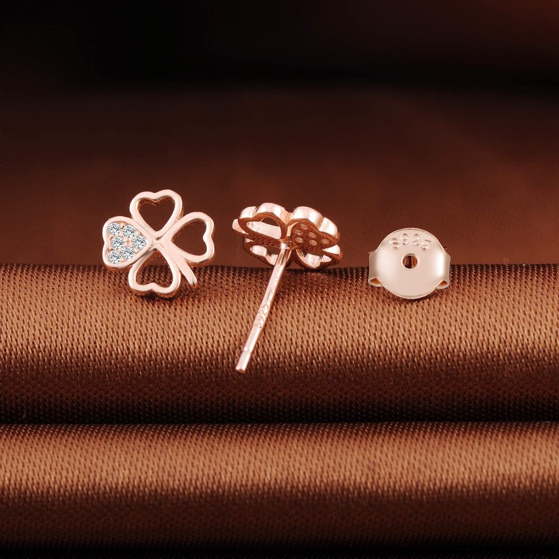 MicLee Women's Stud Earrings 925 Sterling Silver Girls Hollow Four Leaf Clover Cubic Zirconia Earrings in Rose Gold, Sterling Silver, Cubic Zirconia