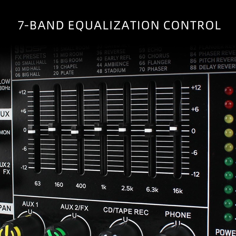 - 【Precision Main Output 7-Band EQ Adjustment】 Experience unparalleled audio control with our audio mixer's 7-band EQ adjustment for the main output. Fine-tune your sound with precision to ensure accurate, crisp, and clear audio quality, perfectly tailored to any source.