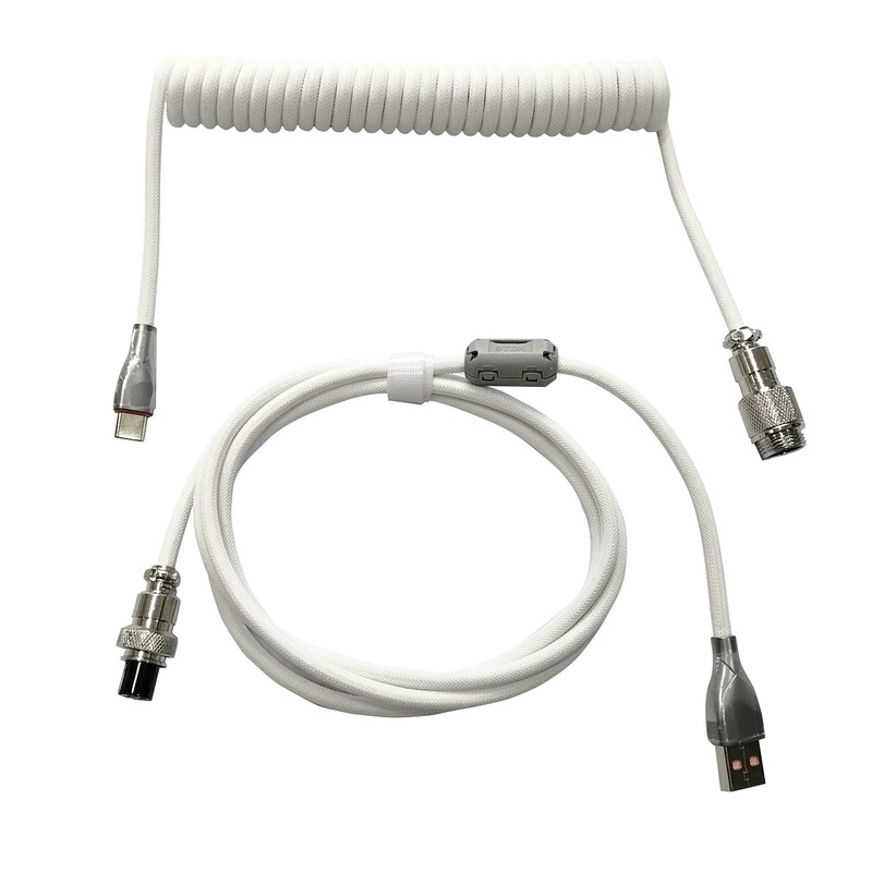 MICOMAKA Custom Double-Sleeved Mechanical Keyboard Cable, Handmade Coiled USB C Cable Artisan Braided Cables for Mechanical Gaming Keyboard Coiled Cable - Custom Keyboard Cable (White)
