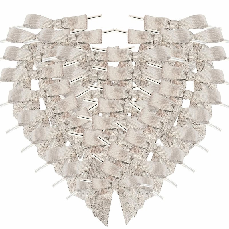 - Material of 100% silver metallic ribbon bows. 50pcs each bag