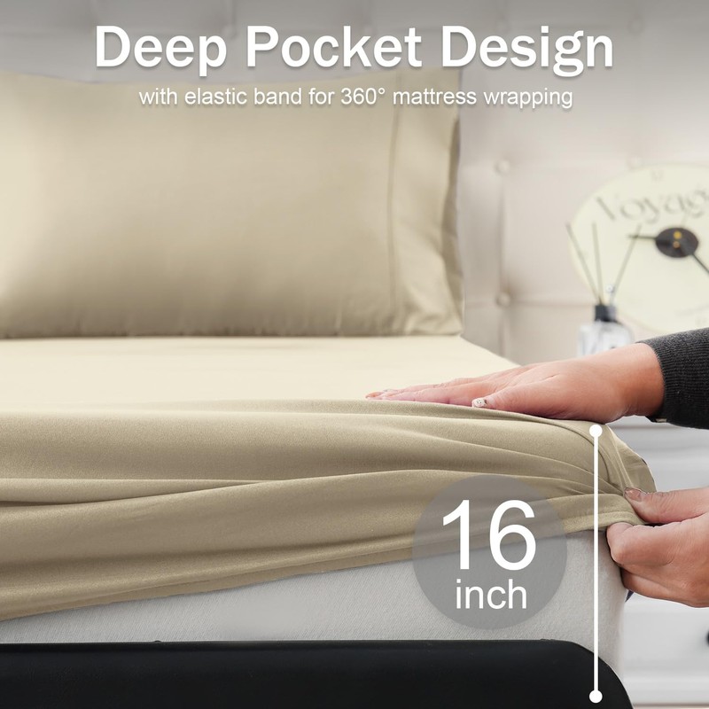 • Deep pocket design - The deep pocket design fits mattress up to 16 inches. The all-around design makes the fitted sheet fit most of traditional or memory foam mattress