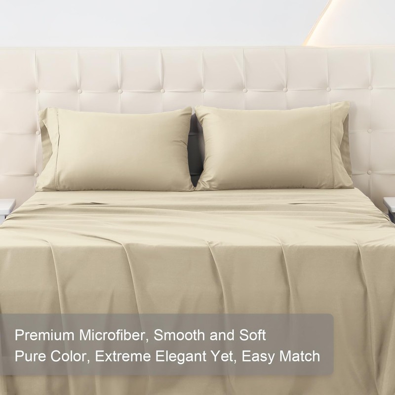 MICORAL King Bed Sheets Set, Soft Breathable Bedding Sheet Set, Sheets Set with 16" Deep Pocket Design (4 Pieces, King, Beige)