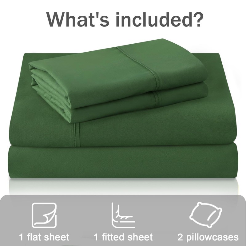 - Bedding set for your room - The Queen sheet set comes with 4 pieces. It includes 1 x flat sheet (90"x102"), 1 x fitted sheet(60"x80") and 2 x pillowcases (20"x30"). The Dark Moss Green bed sheet set makes your room more special.
