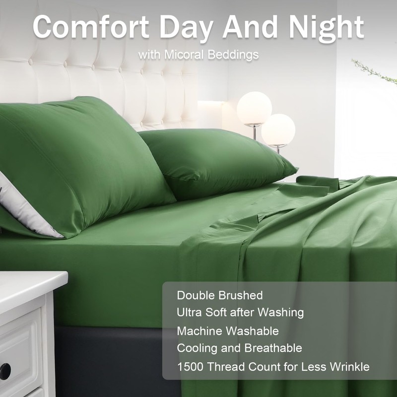 MICORAL Queen Bed Sheets Set, Soft Breathable Bedding Sheet Set, Sheets Set with 16" Deep Pocket Design (4 Pieces, Queen, Dark Moss Green)