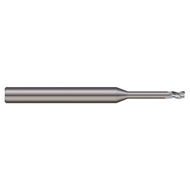 Micro 100 MEF-090-650-005 Corner Radius End Mill, .090" Cutter Dia, 1/8" LOC, .005" Corner Rad, .650" Reach, .086" Neck Dia, 2 Fl, 1/8" Shank Dia, 2" OAL, Uncoated