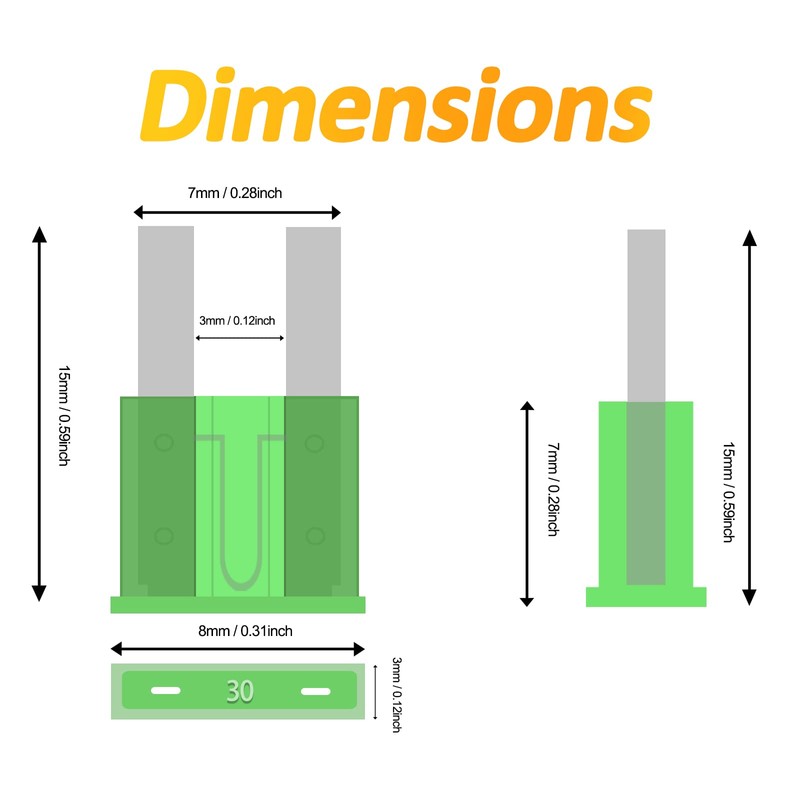 - 【Great Protection】:The Micro2 Car Fuse Kit includes 7 current specifications (5A/ 7.5A/ 10A/ 15A/ 20A/ 25A/ 30A). These small ATR/APT blade fuse protect our vehicles from wiring damage, electrical overload, and potential fires. With superior conductivity, corrosion resistance and high current sensitivity our fuses have tested to specification and is guaranteed to work as designed.