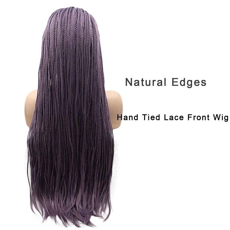 Micro Braided Box Braids Wig with Baby Hair Purple Long Braiding Hair Realistic Hand Braid Lace Front Wigs for Black Women Pre Plucked Braids Synthetic Replacement Hair Real Lace Wig