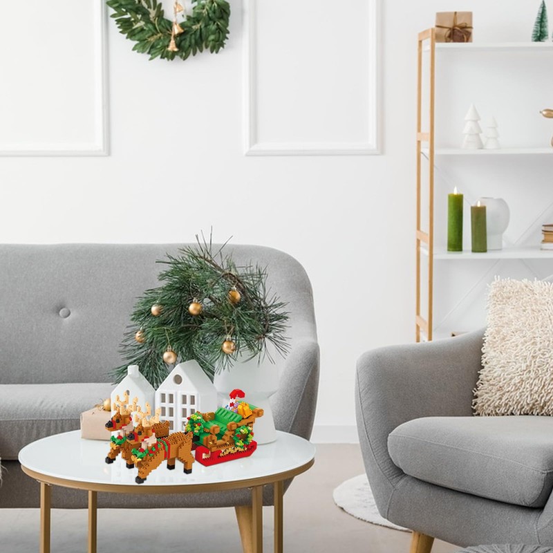 In addition to its function as a toy, this building model can also be used as a cute decoration or collector's item. Its unique design with elements of reindeer and sleigh adds a touch of charm to any room or area.