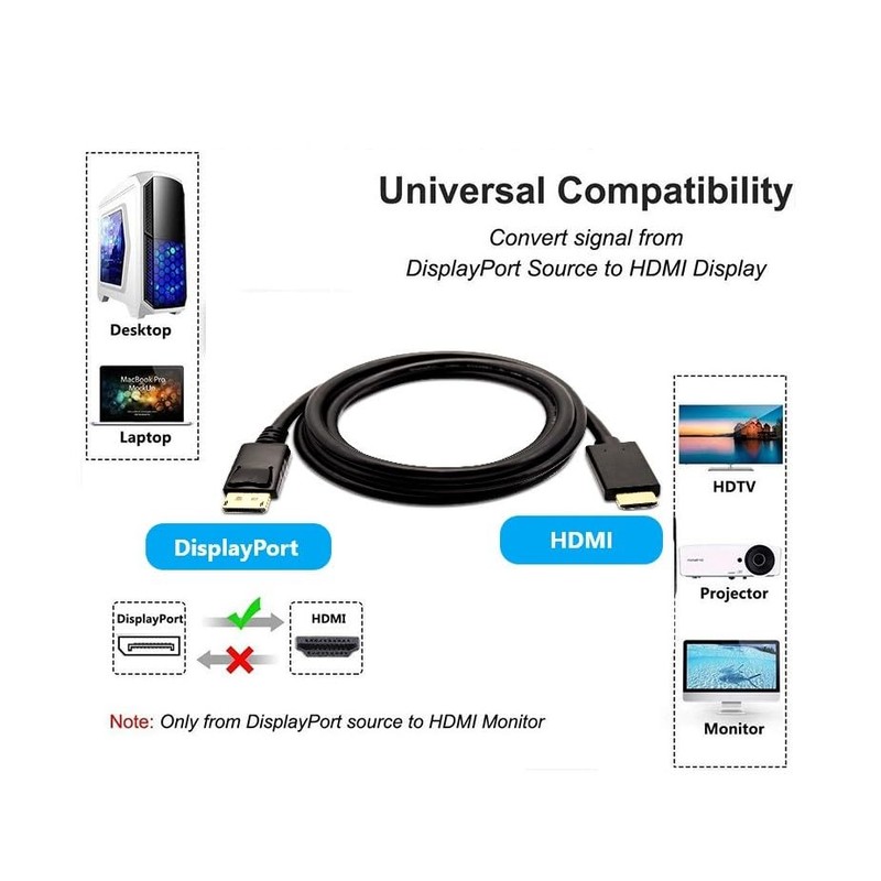 • Connect a DisplayPort (DP, DP++, DisplayPort++) equipped computer to a HD monitor or projector with HDMI connector.