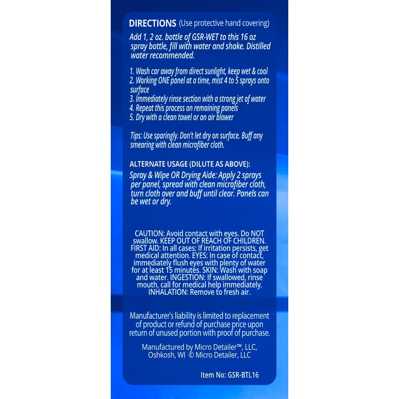 Micro Detailer GSR-WET Touchless Graphene Ceramic Spray Coating Concentrate—Makes 4, 16 oz Bottles