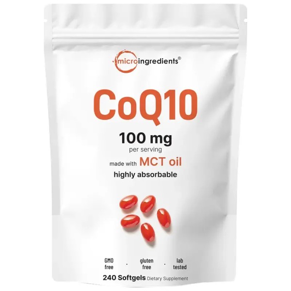 •Micro Ingredients offers highly absorbable CoQ10 Softgels with Coconut MCT Oil for easy digestion, delivering 100mg of coenzyme Q10 as ubiquinone per serving.