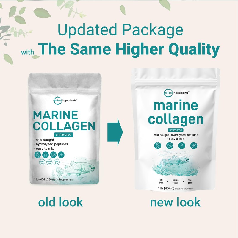 - Micro Ingredients offers 1lb of marine collagen peptide powder, 12g of pure marine fish collagen per serving, created with premium hydrolyzed collagen for efficient absorption that nourishes the hair, skin, nails, and joints.