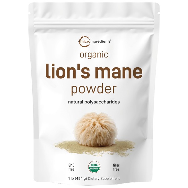 Micro Ingredients Micro Ingredients Organic Lions Mane Mushroom Supplement Powder, 16 Ounce | Natural Superfood for Brain, Energy, & Immune Health | Non-GMO Vegan