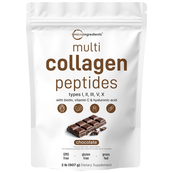 Micro Ingredients Multi Collagen Peptides Powder, 2lb | Type I, II, III, V, X + Biotin, Vitamin C & Hyaluronic Acid | Chocolate Flavor | Supports Hair, Skin & Joint Health | Keto, Non-GMO