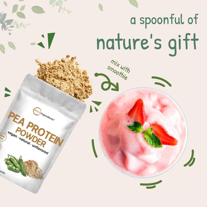 - Micro Ingredients offers premium North American farm grown vegan-friendly pea protein powder, 100% raw and unadulterated, rich source of complete proteins, unflavored and unsweetened for easy mixing.