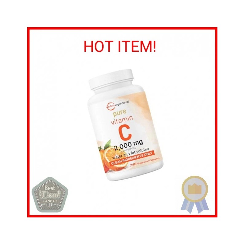 Micro Ingredients Pure Vitamin C 2,000mg, 240 Veggie Capsules | Highly Bioava...
