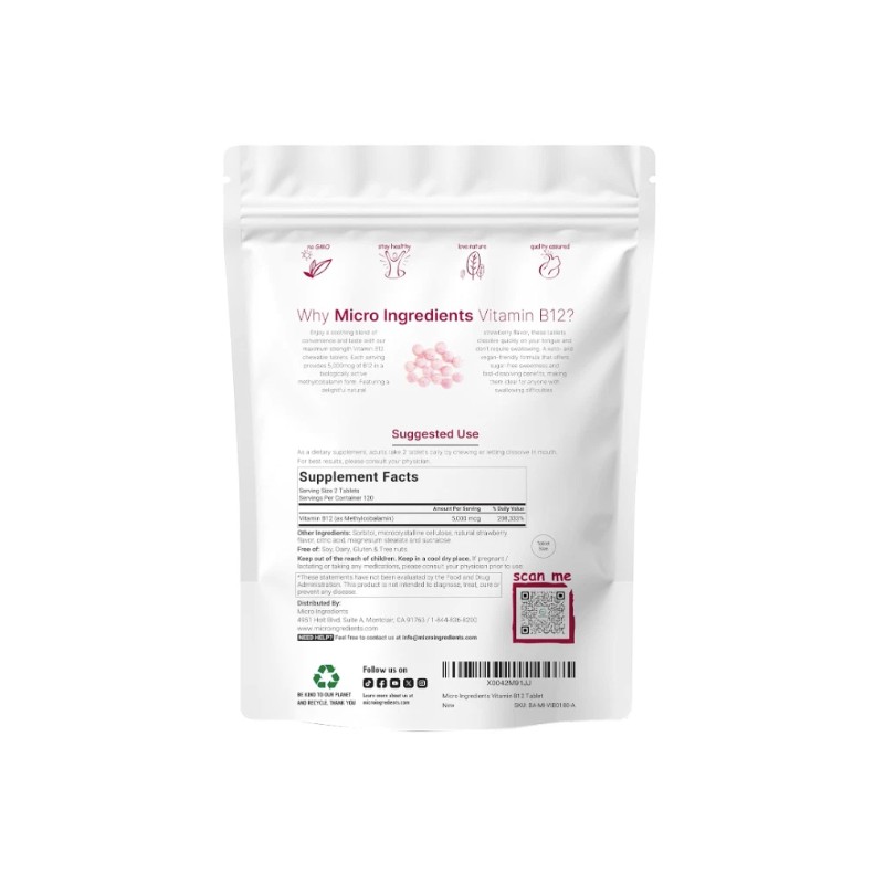 Micro Ingredients Vitamin B12 5000mcg | Methyl B12 Active Form 240 Chewable | |