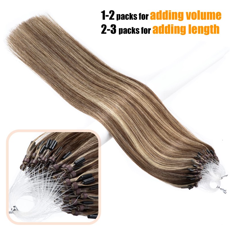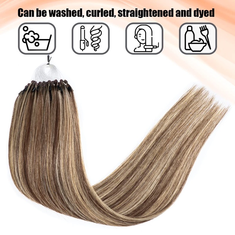 Micro Loop Hair 0.5g/s 100s Straight Human Hair Extensions Easy Loop Brazilian Remy Hair Micro Ring Hair Extensions 18" Color P#4/613